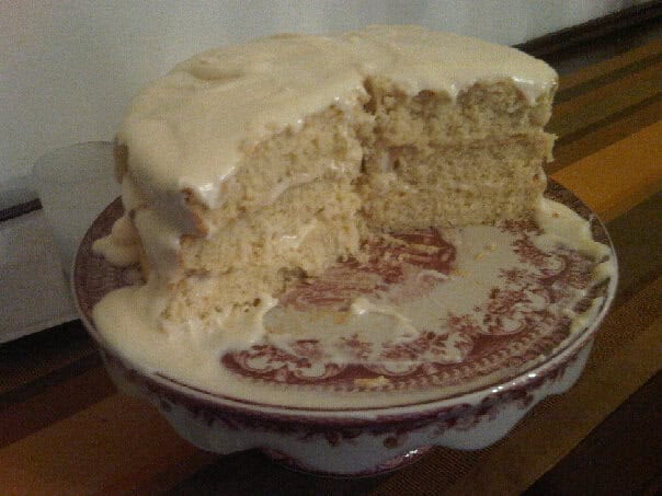 Pre-heat the oven to 350 degrees.  Combine softened butter, eggs, vanilla, lemon extract, lemon juice and sugar in a medium bowl.  In another bowl combine flour baking powder and salt. Add half of the flour mixture to butter mixture and stir.  Next add half of the milk and stir.  Finish by adding the rest of the flour and then the rest of the milk stirring until smooth.  You can do this by hand, use a hand or standing mixer (I use a standing mixture).  Oil and flour three round cake pans; pour mixture evenly into all three pans and bake until done – usually 20 to 30 minutes. Remove from the oven and cool. Remove from the pans, frost between layers and the top.