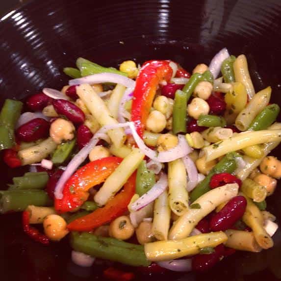 This is one of my favorite salads. Quite the guilty pleasure as it does have quite a bit of sugar. Sometimes I like to mix it with a green salad just to change it up a bit. My Four Bean Salad is great for a barbeque, picnic or potluck dinner.