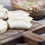 The combination of pork and cabbage is classic. Make sure to salt the cabbage and squeeze out the excess water so the dumplings don’t get soggy.