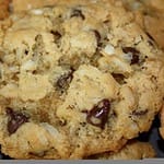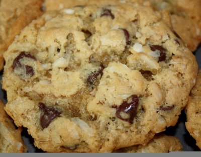 Place butter in a large bowl and beat until creamed. Mix in sugars, eggs and vanilla. Add flour, baking soda and salt. Mix well. Next, add oatmeal, coconut, pecans and chocolate chips. Mix well until all ingredients are combined. Drop dough by rounded tab teaspoonfuls onto