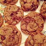 Preheat your oven to 350 degrees. In a large-size bowl combine flour, baking soda, and kosher salt. Set aside. In another large-size bowl beat together butter and sugars until creamy. Add vanilla. Add eggs one at a time until incorporated. Slowly add flour mixture into wet mixture. Stir in chocolate and nuts if you’re using them. Drop by tablespoon onto parchment paper lined baking sheets. Place in oven and bake for 10 minutes or until golden brown. Remember each oven heats differently. Remove from oven and let cool on baking sheet for 10 minutes before removing. Transfer to serving plate. Makes about 48 cookies.