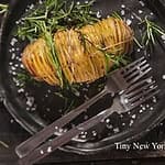 Cook whole potatoes almost all the way through in a series of close vertical slices so they fan out as they cook. Choose potatoes that weigh no more than 6 ounces each
