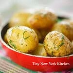 Local farmers sacrifice quantity for quality each summer by rooting around their still growing potato plants and detaching tiny new potatoes to sell to their customers. Baby potatoes have a delicate, fresh flavor and are delicious just cooked until tender