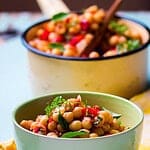 I love this incredibly simple and flavorful side dish. The chickpeas and onion blend with the saltiness from the prosciutto. The tomatoes offer a bit of sweetness and tang.