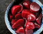 Place the beets in a large pot with water just coming to the top of the beets. Boil the beets, until tender when sticking a knife in. Remove from heat and drain. Run the beets under cold water to easily remove the skins. Slice into quarters.
