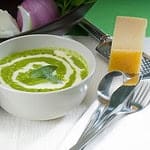 A beautifully green colored soup garnished with a touch of cream is perfect for these cold winter days.