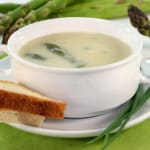 Finally spring is here and not a moment too soon either! I like to make Asparagus Soup as soon as the really good asparagus comes into the market. The young spears are tender enough to purée easily, and the result is smooth and creamy. The soup is wonderful in any season, actually, as asparagus is usually available year-round in most markets. You can always trim the spears with a vegetable peeler if the ends look at all fibrous.