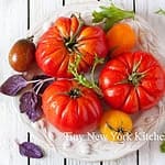 Make the most of your local summer tomato bounty. Heirlooms should be heavy for their size, be supple but not soft, and have no blemishes. Cracks are A-OK though.