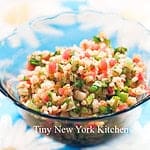 Delicious Tabouleh Salad is an excellent way to use up summer tomatoes. Tabouleh is an Arab Middle Eastern vegetarian dish traditionally made with tomatoes, finely chopped parsley, mint, bulgur and onion, and seasoned with olive oil, lemon juice, and salt.