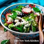 Snap peas add flavor and vibrant color to a salad tossed with radishes, feta, and kalamata olives.