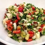 Full-flavored favas are, to my mind, beans at their best. They’re softer and richer than lima beans and have a grainier texture. They have a strong, herb taste with just a hint of pepper, which makes a perfect Fava Bean & Red Pepper Salad.