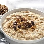 The best oatmeal that I’ve ever had was the first time I stayed in the Lake District. It was the beginning of fall and there was a bit of a chill in the mornings. The woman who ran the small Inn was a very nice Northern England type who would get up very early every morning to get this oatmeal started. I can still taste it years later. Steel-cut oats are the secret ingredient for this unbelievable oatmeal. A bowlful served with maple syrup, cream, plump raisins, and walnuts can be the perfect start of the day. No wonder the Three Bears were so vexed when they came home to find their bowls empty!