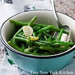 Sizzling, lightly caramelized green beans flavored generously with garlic are a perfect culinary dream of texture, color, and taste. You might find yourself whipping up a batch to eat as a snack instead of serving them as a side dish. Yellow wax beans, purple beans or a combination of the three colors would be a lovely choice if you want to vary the ingredients.
