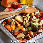 Cheesy baked pasta is even more fun when you can slice it into wedges. Spaghetti, bucatini, or rigatoni, if it’s pasta it works here. Roasting the vegetables first concentrates their flavors and removes excess water. Don’t rinse the noodles because you want that starch. For clean slices let the casserole rest before cutting.