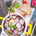 Farmers’ Markets are bursting with delicious radishes. Try combining a variety of radishes for a beautiful Radish Salad.