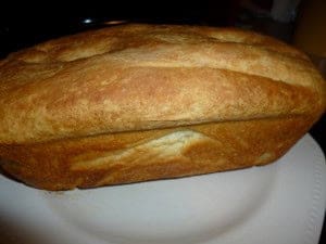 Turn the dough out onto a lightly floured surface. Knead in enough of the remaining flour to make a stiff dough, but is smooth and elastic. Again, don’t worry if you don’t use all of the flour. Knead for six minutes by pushing the dough with the heel of your hand. Turn the dough over and do push with the heel of your hand. Shape the dough into a large ball and place into a lightly grease d bowl. Turn the dough to grease both sides of the dough. Cover the bowl with a clean kitchen towel and let it rise for 1 hour in a draft free place. After 1 hour punch the dough down. You will know when the dough is ready to punch down when after poking your fingers into the dough the indentations stay. To punch the dough you just punch your fist into the center of the dough. Now turn the dough out onto a lightly floured surface and divide in half. Cover the dough the dough and let it sit for 10 minutes. Grease two loaf pans (8×4 inches). After sitting for 10 minutes shape each dough half and place into the prepared loaf pans. Place the two loaf pans in the same warm, draft free place and cover with the same clean kitchen towel. Let rise again for 45 minutes. Preheat your oven to 350º F. Bake for 40 minutes or until the bread sounds hollow when lightly tapped. Remember that not all ovens are created equal and heat differently from the next so set your timer for 35 minutes to check for doneness. Remove from the oven and immediately remove from the loaf pans. Cool completely on wire racks and serve. Makes 2 loaves.