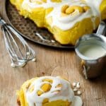 The dough in this recipe can be made and shaped the night before you serve them. All you need to do is put them in the oven. A delicious vanilla icing offers the finishing touch by adding just the right amount of sweetness to the just baked rolls.