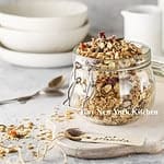 Any of these ingredients may be added to the granola in equal quantities: Chopped dried dates, apples, pineapple, apricots, pears, mangos, raisins, dried cranberries, cherries, blueberries, chopped almonds, hazelnuts, peanuts, sunflower seeds, wheat flakes, or oat bran. You also might want to try using different honeys like lavender or orange blossom. Or you may want to use maple syrup instead of honey. When trying out new additions make sure to keep a good proportion of crunchy ingredients in the final mixture.