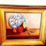 I love to collect oil paintings to hang on the walls of my house. Last weekend I picked up this fruit & plate paiting at an antique gallery in Stamford, CT.